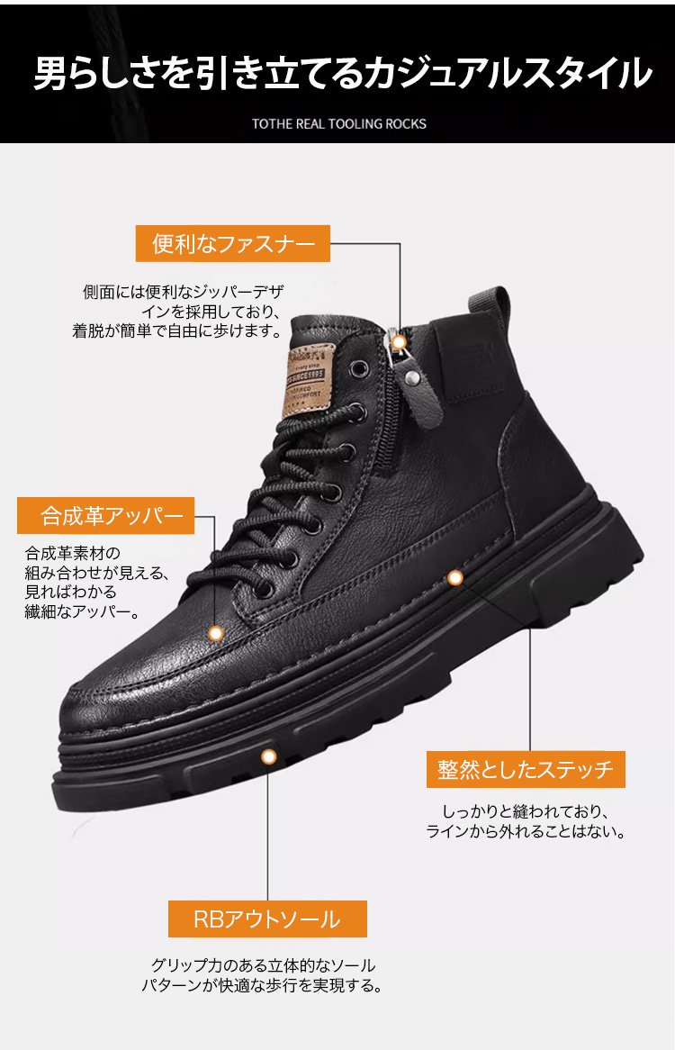 ハイカットジッパー付きマーチンブーツメンズ